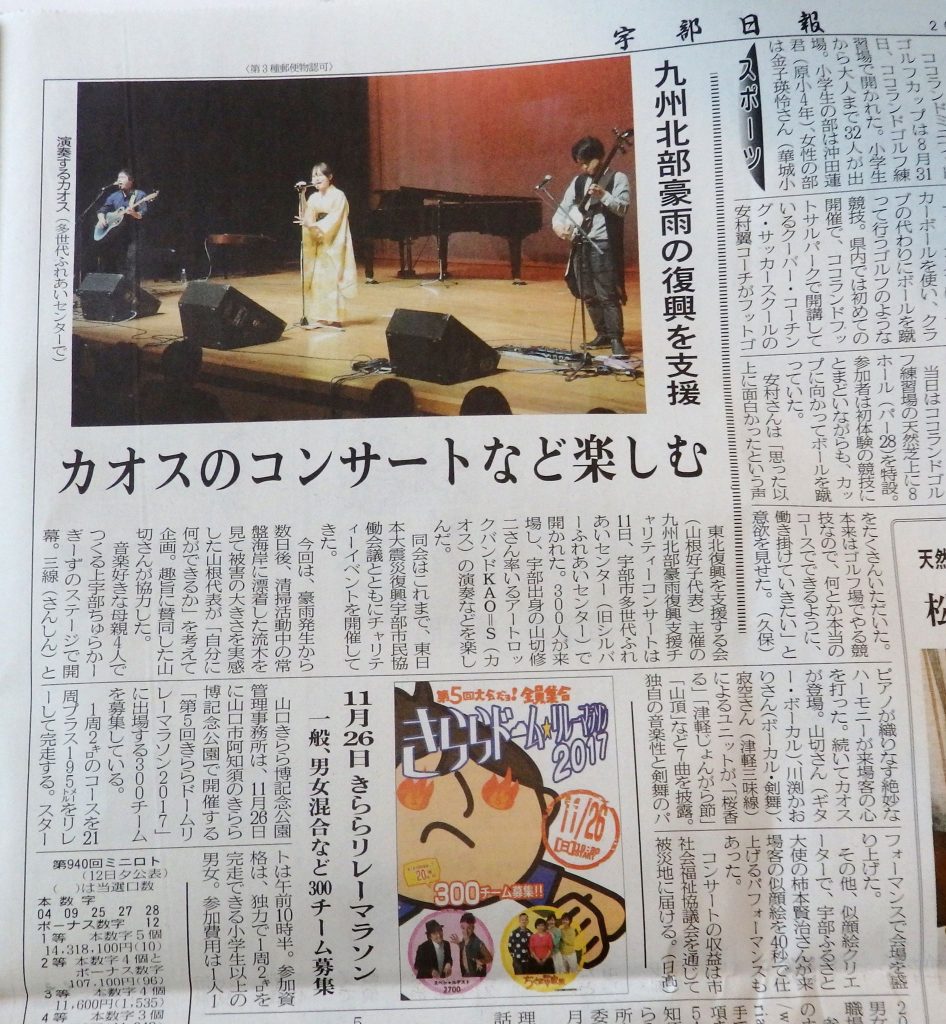 このコンサートは7月初旬に九州北部を襲った豪雨災害の被害者支援のための、チャリティーコンサートでした。